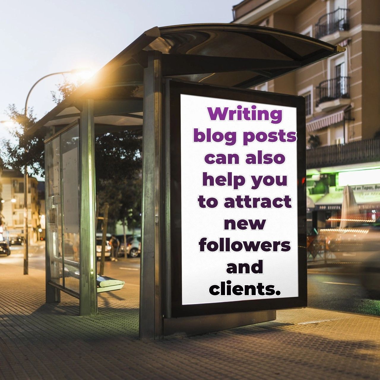 Writing blog posts is like putting up a sign that says, "Come on in, I've got something interesting to share!" Here's how it can help you attract new followers and clients: